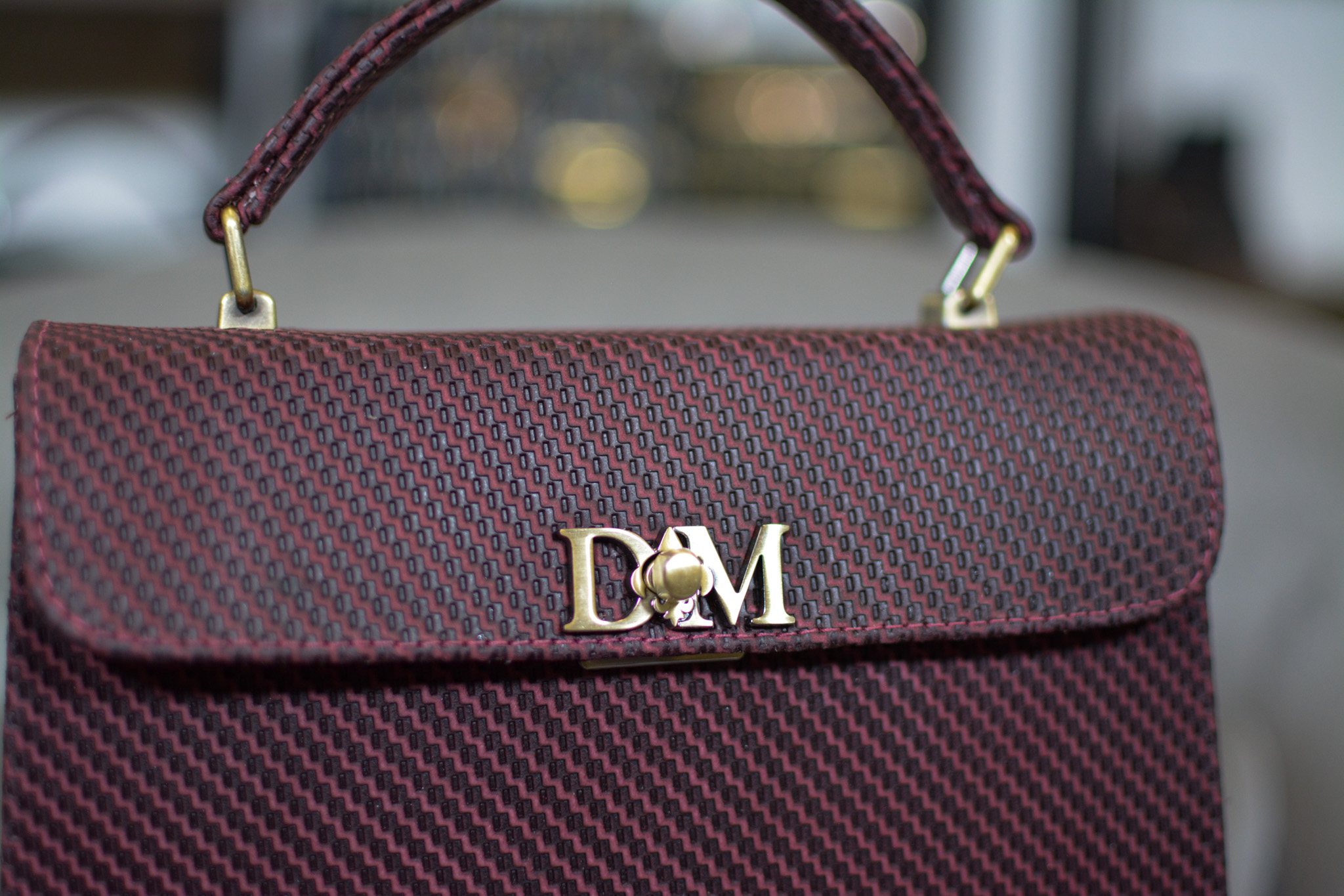 Finished in a rich burgundy tone, the bag is complemented by gold-tone hardware, creating a striking balance between contemporary elegance and timeless appeal. Its structured silhouette and top-handle design reflect classic craftsmanship, reimagined with a modern edge.