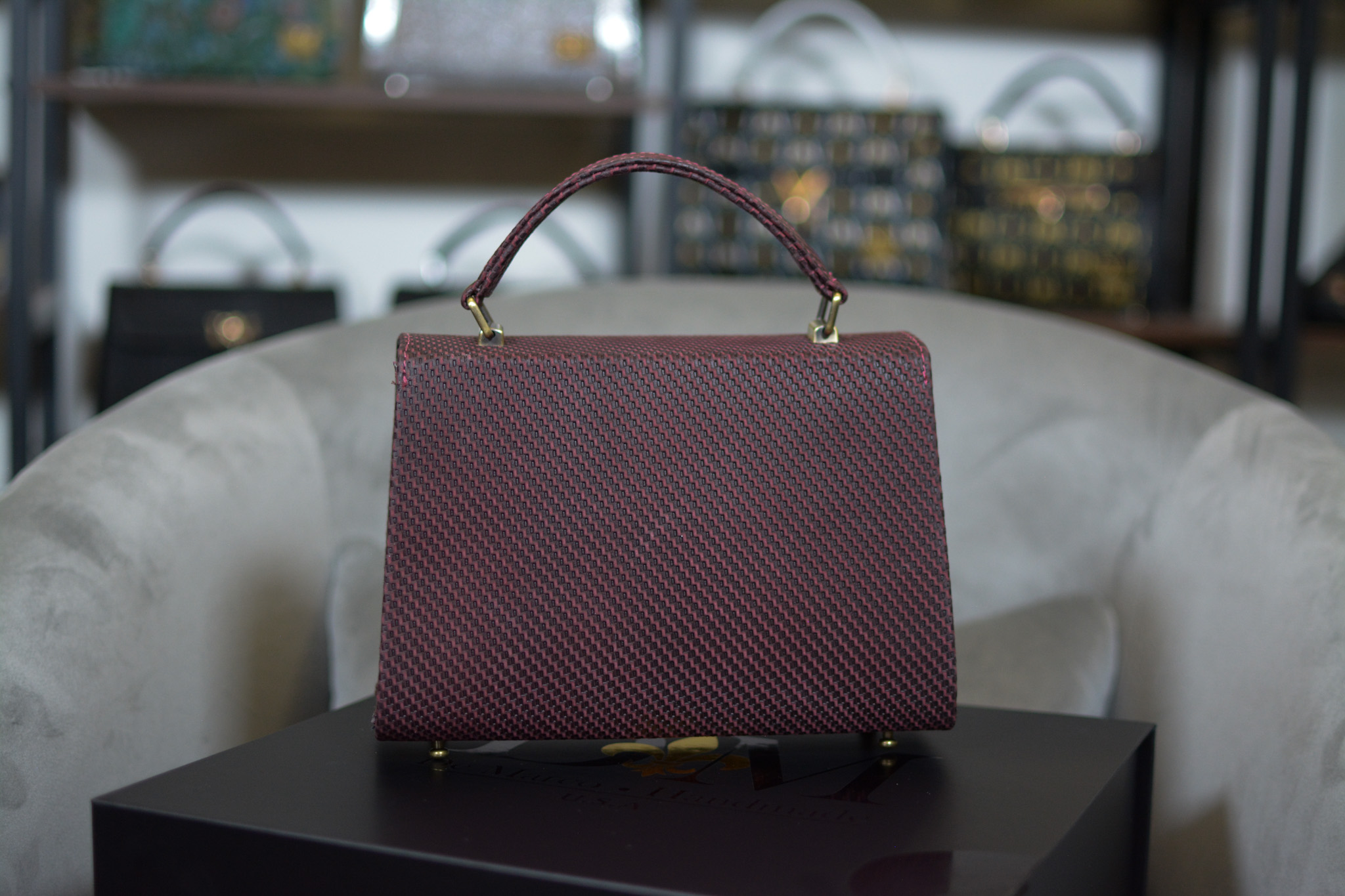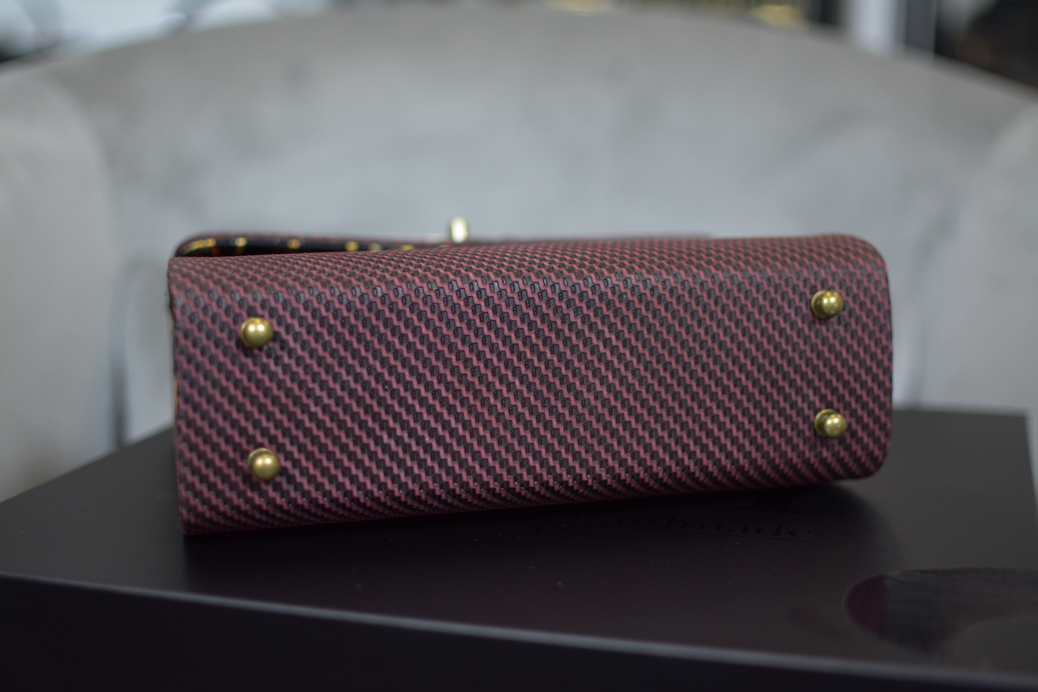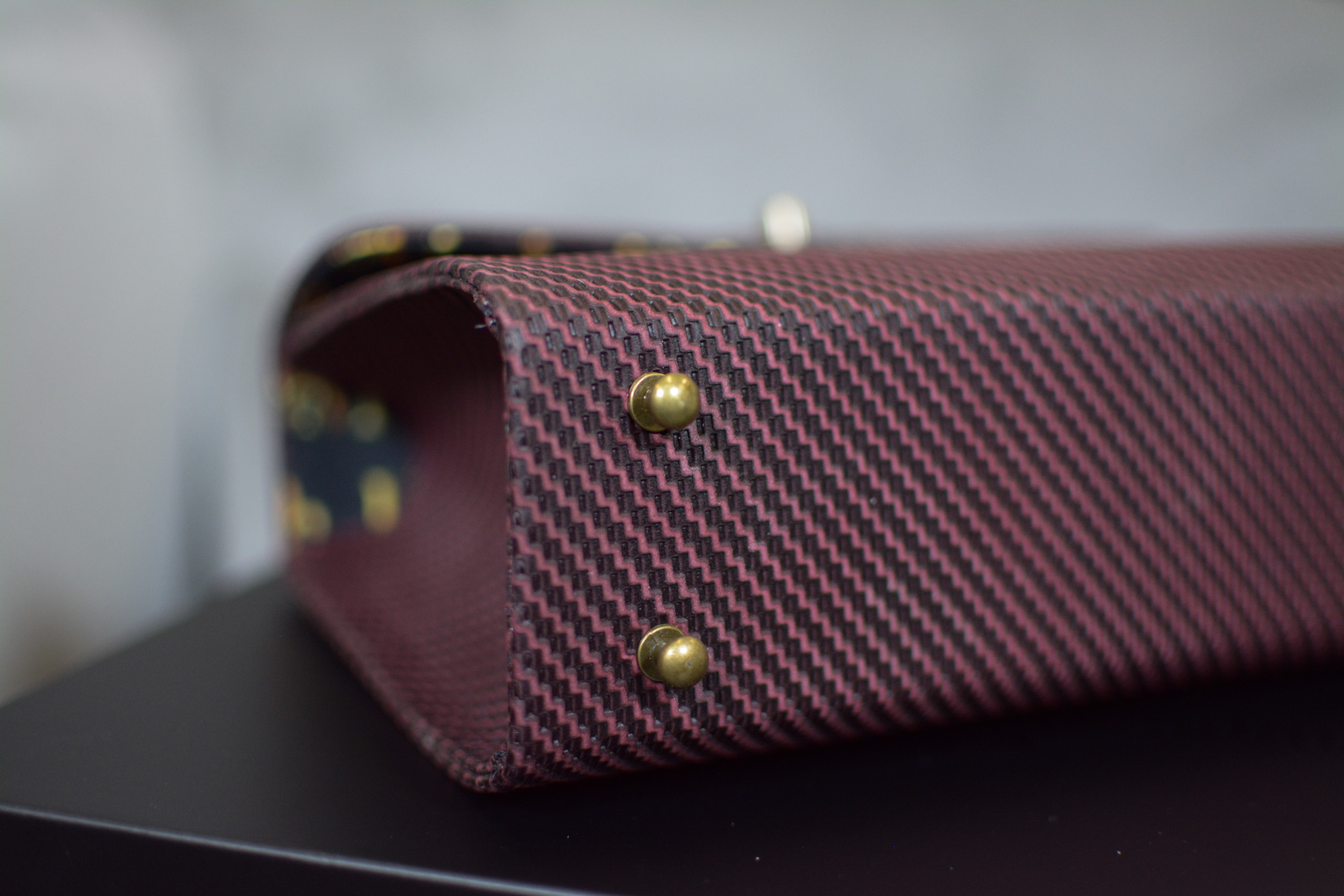 A refined expression of modern luxury, The Fleur Burgundy is meticulously 100% handmade using premium leather with a distinctive texture inspired by carbon fiber. The structured surface creates depth and dimension, elevating the design with a bold yet sophisticated character.